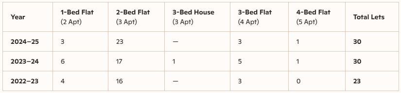 We’re a small, community-based housing association with limited availability. Out of our 529 properties, only 25 became available this year.